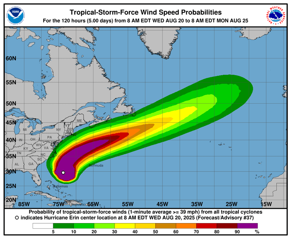 There’s a nice satellite loop of Hurricane Erin at the end of this short piece.
