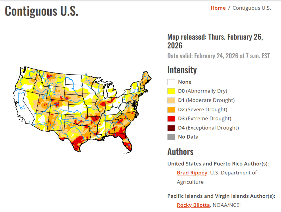 One key point we took from the GRACE/GRACE-FO data analysis papers so far is that the wet places tend get wetter and the dry places tend to get drier. But, so-called “pluvial” events, essentially short term (1-3 years) flooding events, are occurring within drying regions. So you see major rainfall events in places with drought. I’d say that we’re clearly seeing that, particularly in the southeast and parts of the west. Portions of the southeast that suffered from Hurricane Helene are now in drought.