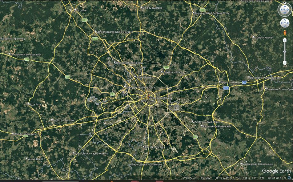 Houston has several ring roads, much like Moscow, Russia. The Houston Metro Area has a population of around eight million, while Moscow has a population of 13 million.